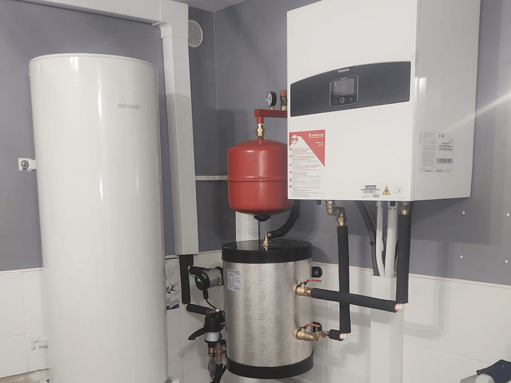 Même sans chaudière, l’eau chaude sanitaire peut être produite : par ballon électrique, ballon thermodynamique (air ambiant ou air extrait) ou pompe à chaleur air/eau en version duo avec ballon. L’eau est chauffée via un échangeur puis stockée dans le ballon, avec priorité ECS et régulation de température. Le chauffage des radiateurs et/ou du plancher chauffant peut rester assuré. Le remplacement d’une chaudière fioul ou gaz est pris en charge, et nos équipes vous orientent vers la solution la plus adaptée.